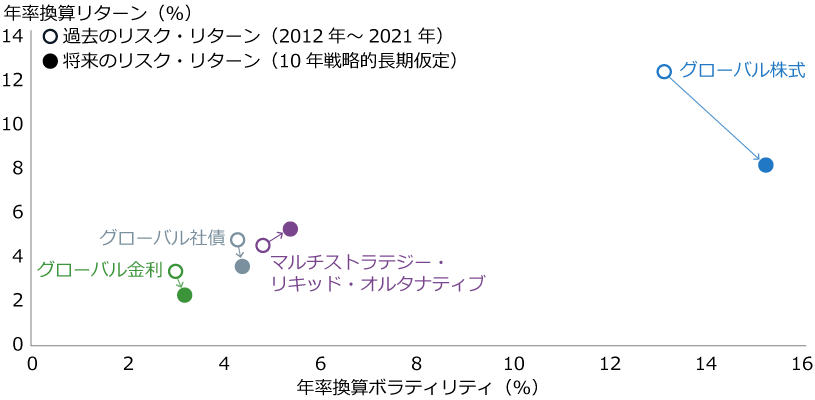- 独自のリターン源泉を活用し、集中リスクを削減するために、オルタナティブ投資にポートフォリオを分散すること。