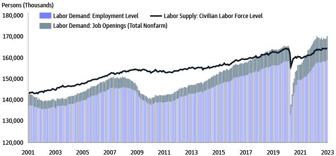 Source: Bureau of Labor Statistics, Goldman Sachs Asset Management. As of March 13, 2023.
