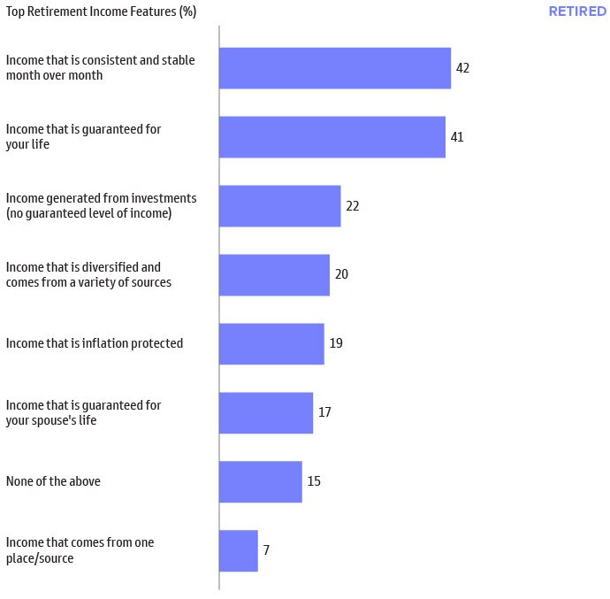Building on the challenges of managing retirement income, retirees prefer income that is consistent and stable (42%), and income guaranteed for life as a close second (41%).