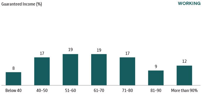 When compared to our working respondents, they are more evenly distributed in the level of guaranteed income they desire for retirement, with most responses clustered between 41-80%.