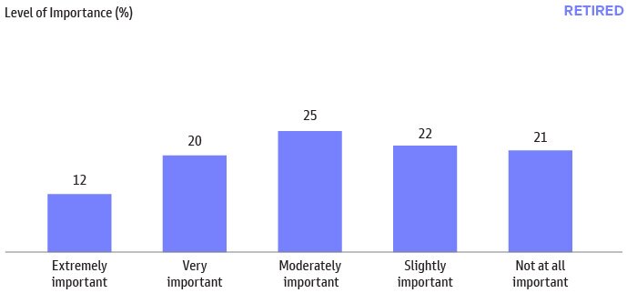 However, we still see a strong desire for financial help as 79% of retired respondents reported that financial help is either extremely, very, moderately, or slightly important to successfully manage one’s retirement income and investments.