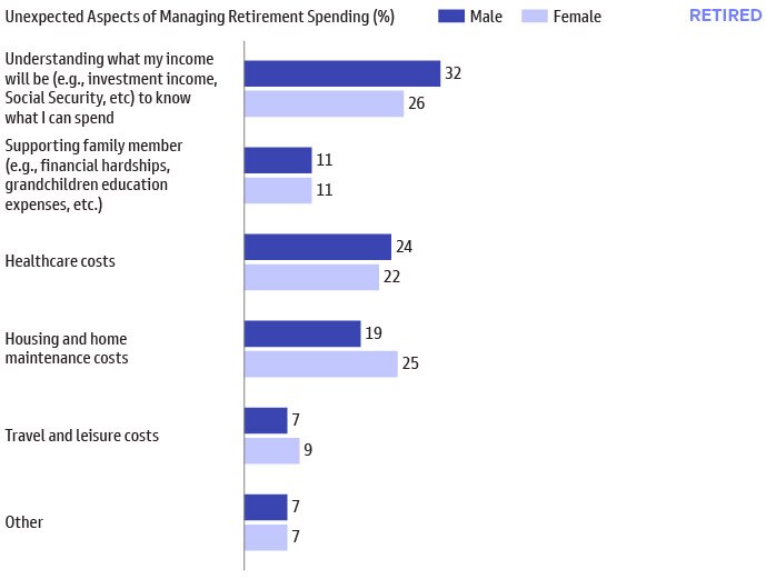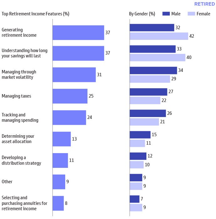 These concerns are more prevalent for retired women respondents seeking to manage retirement income.