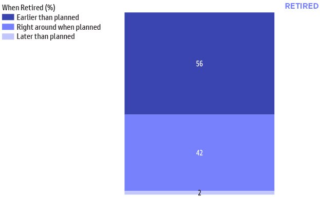 Since over half of retired respondents retired earlier than planned, building a strategy that incorporates this reality can help alleviate the impact.