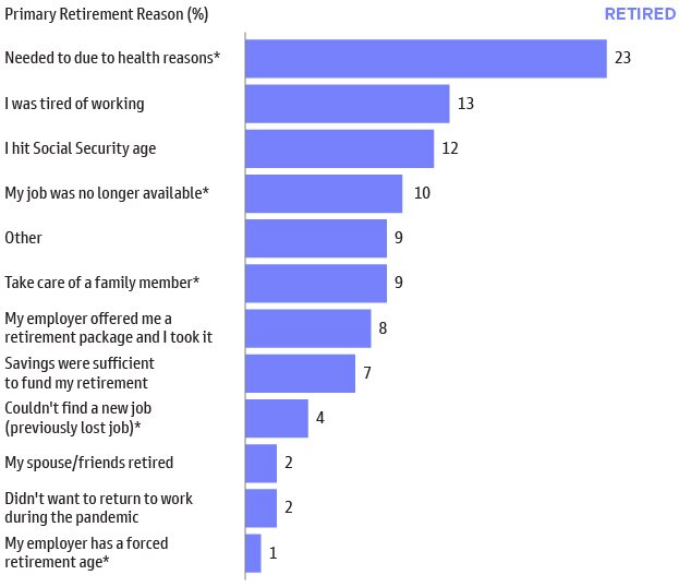 Notably, only 7% state that the primary reason for retirement was having sufficient savings.
