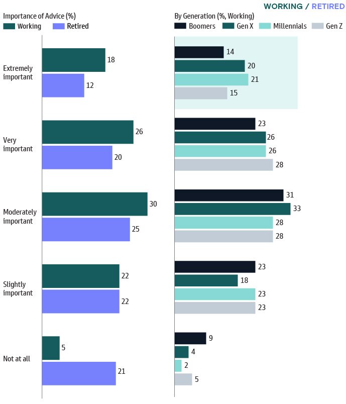 Notably, as we look across the generations, Boomers and Gen X respondents feel that financial advisors are their most important source of advice.