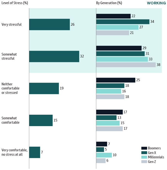 Looking specifically at the generational impact, we further see how saving for retirement is complicated by managing other more immediate financial needs. Gen X was the first generation to significantly experience the challenge and now Millennials and Gen Z are feeling the largest impact.