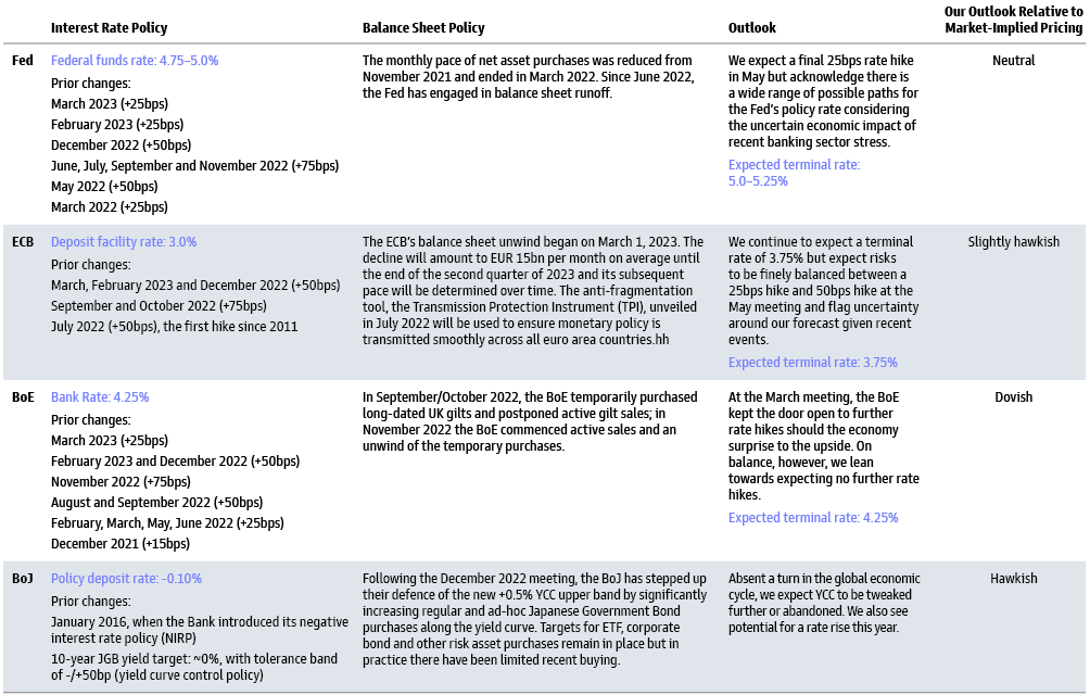 Abbreviations: Reserve Bank of Australia (RBA), Reserve Bank of New Zealand (RBNZ), Bank of Canada (BoC), Swiss National Bank (SNB), US Federal Reserve (Fed), European Central Bank (ECB), Bank of England (BoE) and Bank of Japan (BoJ).