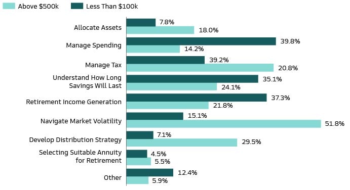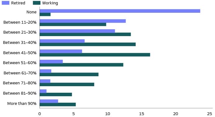 1. Methodology: We evaluate survey responses from both working and retired Americans to understand the realities of preparing for and living in retirement. Our goal is to learn about the financial obstacles individuals need to overcome and lessons that can be applied. Our Retirement Survey & Insights Report includes key findings that we hope will help plan advisors and plan sponsors better prepare employees for retirement. Our findings are from 5,261 individuals surveyed in June-July 2023 and provide insights from a diverse set of perspectives, including (i) working individuals (3,673 working individuals across generations—working Baby Boomers, Generation X, Millennials, and Generation Z), and (ii) retired individuals (1,588 retired individuals age 50-75).