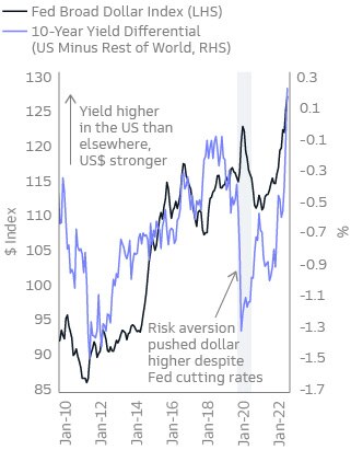 With consumer prices rising substantially from their low pre-pandemic levels, global central banks have embarked on their most hawkish tightening campaigns since the 1980s. But each country has its own set of circumstances when dealing with inflation, and the US in particular benefits from having a moderately closed economy and relative insulation from the ongoing energy crisis in the euro area and the UK. The Fed, therefore, has been able to raise rates even faster than its global counterparts. We expect that varying regional inflation rates, diverging central bank policy decisions, and different regional COVID-19 conditions will continue to drive currency volatility.