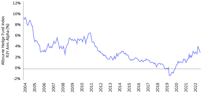 For most of the past decade, the hedge fund industry faced headwinds to generate alpha as subdued volatility led to fewer trading opportunities and a near-zero interest rate environment hindered the asset price discovery process. Following the tightening of monetary policies, we now have a new macro regime characterized by greater volatility—which should also lead to better investing opportunities for hedge funds. Historically, when equity and fixed income volatility has increased, hedge fund alpha generation has also improved; this scenario occurred as recently as the second half of 2022.
