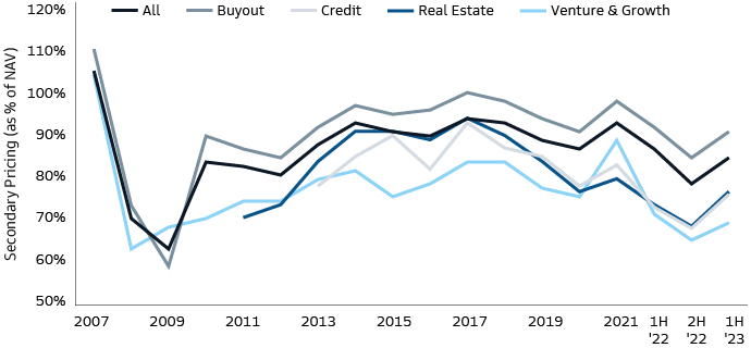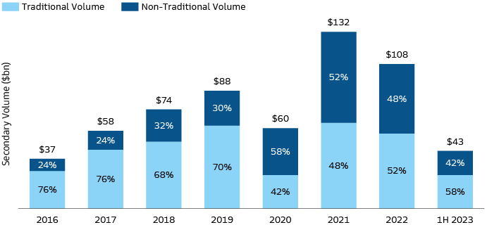 2 Evercore H1 2023 Secondary Market Survey. As of July 2023.