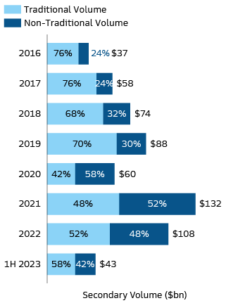 4 Jefferies H1 2023 Global Secondary Market Review. As of July 2023.