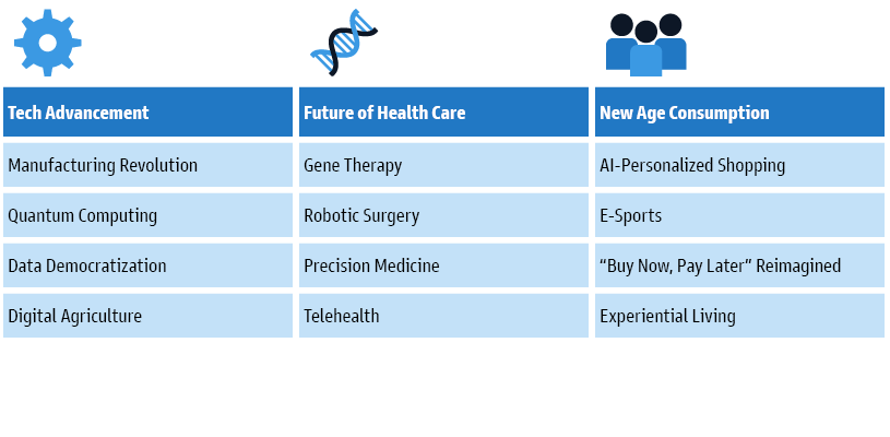 - Alpha opportunities to migrate from major factor tilts to more idiosyncratic outcomes dictated by innovation and disruption.