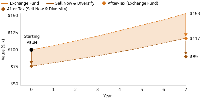 - Using exchange funds to swap large single stock positions for a diversified basket without triggering a capital gains tax.