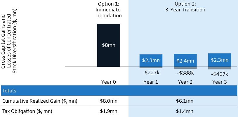 - Transitioning concentrated positions into liquid, diversified portfolios in a tax-efficient manner via tax-advantaged SMAs.