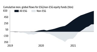 Exhibit 8: ESG equity inflows have outpaced non-ESG flows